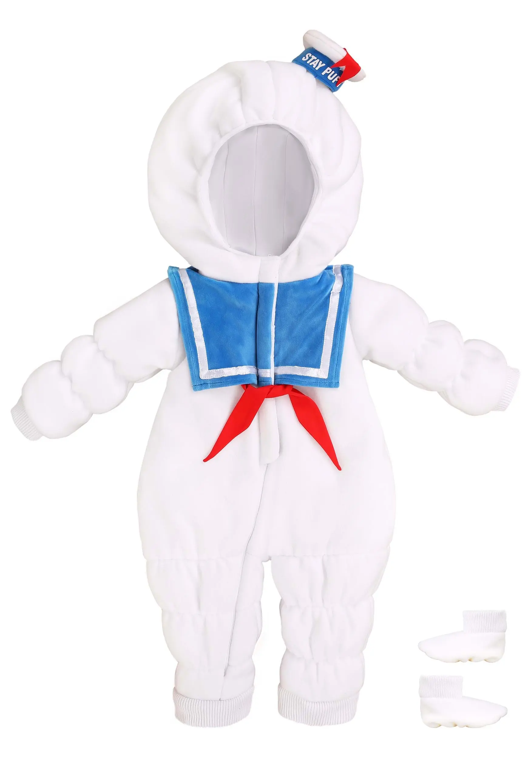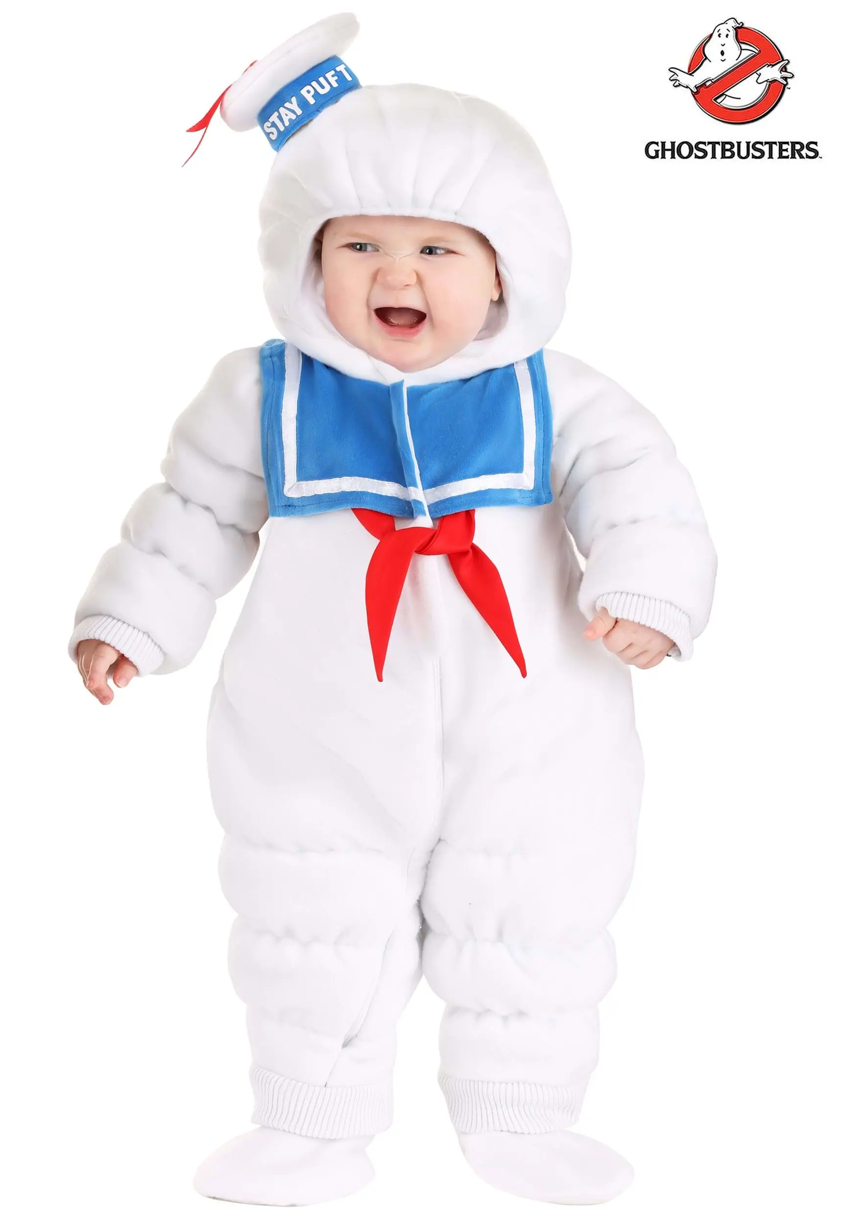 This cuddly Made By Us Stay Puft Onesie is fully-licensed from the Ghostbusters franchise. Our in-house designers created a quilted fleece onesie that simply zips up the front and all the way down the right leg for easy changing. Fully lined for comfort, this bodysuit is a great choice for a chilly Halloween evening. An adorable sailor hat with “Stay Puft” on the front, tops the hood.
