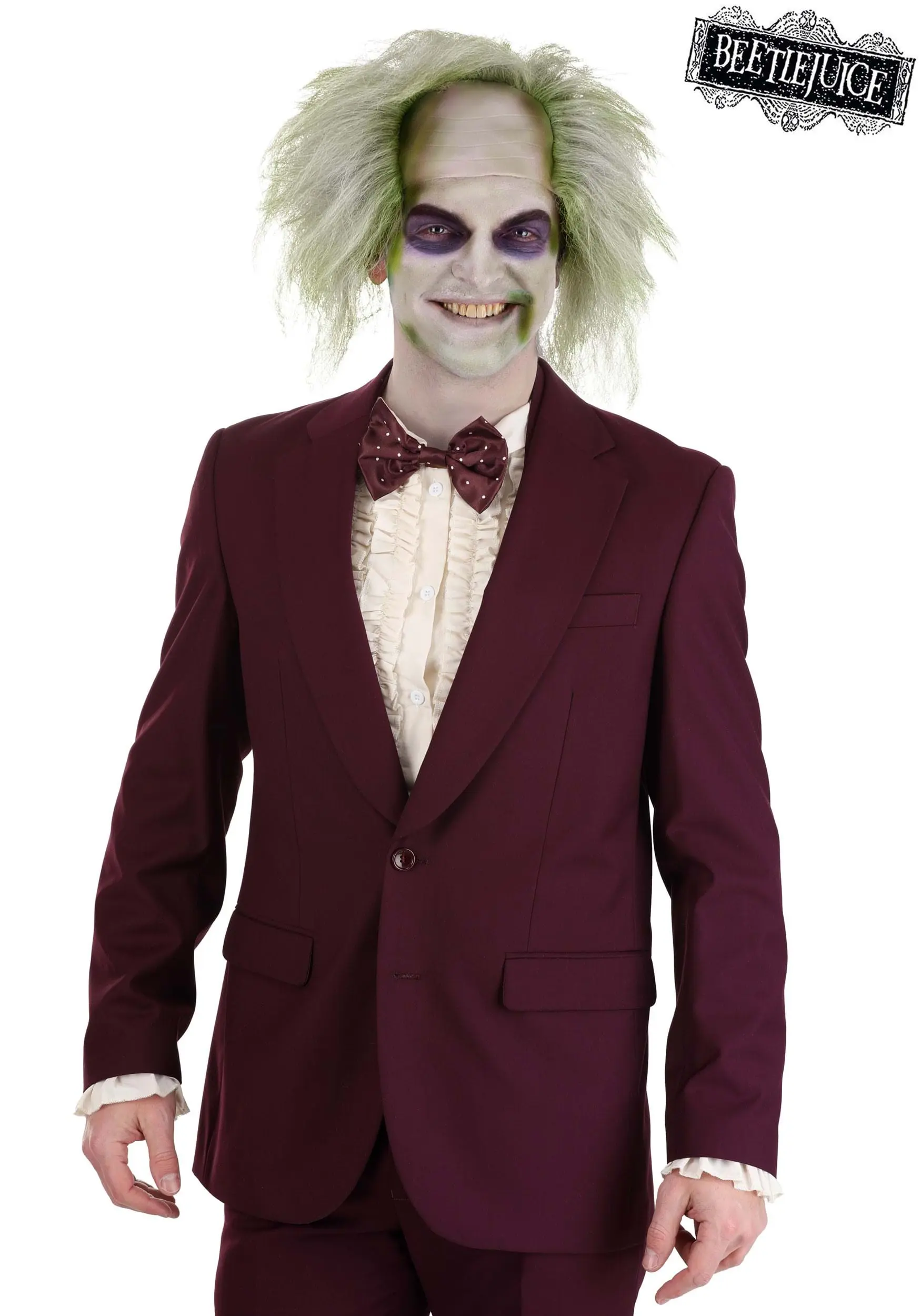 Regretfully, generally, only Beetlejuice can muster that much mojo. Of course, if you’d like to borrow some of the awesomeness of the afterlife, you don’t need to mutter his name three times. All you have to do is answer the question, “Would you like to get your hands on this officially licensed Men’s Beetlejuice Wedding Suit Blazer!?”