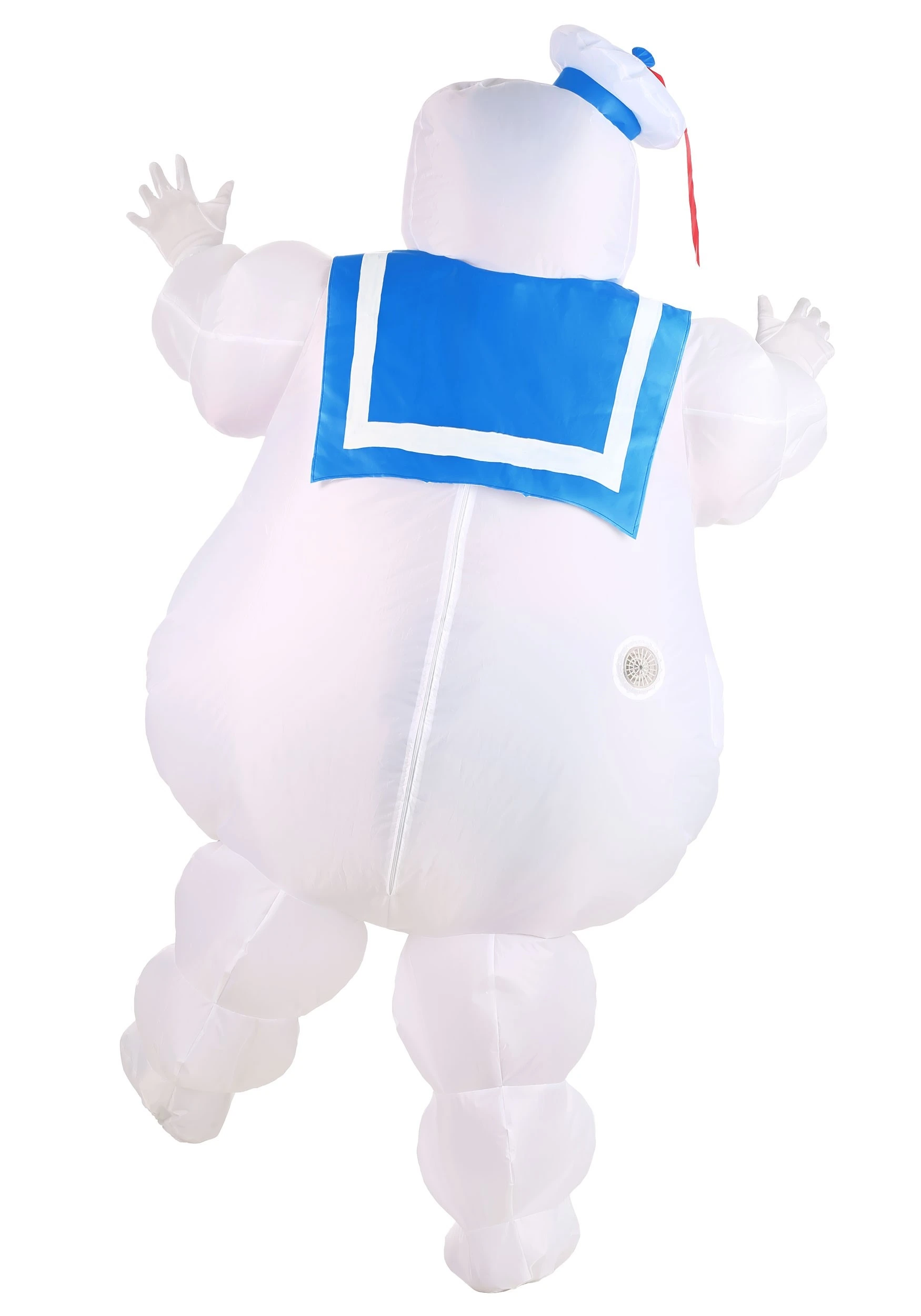 Show the world a friendlier, less monstrous version of the Marshmallow Man with this Ghostbusters Stay Puft Inflatable Costume! This officially licensed costume is inspired by the villain from the 1984 movie, Ghostbusters. It comes with a jumpsuit that has elastic in the cuffs and a zipper in the back to create an air-tight seal. The back of the costume features a fan and with the simple flip of a switch, it will self-inflate the costume. The exterior is designed to look like the friendly Stay Puft Marshmallow Man!